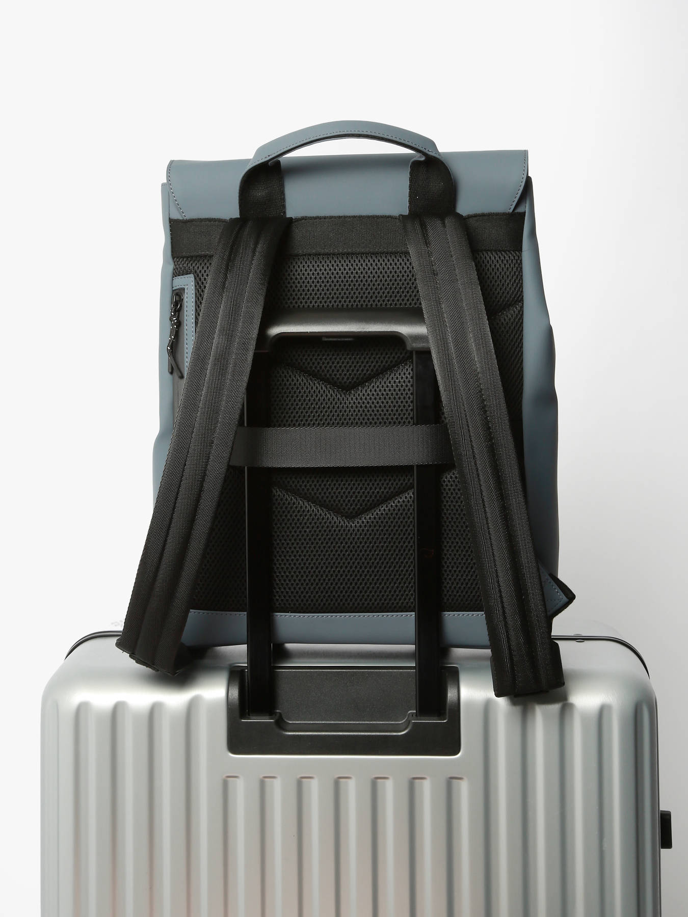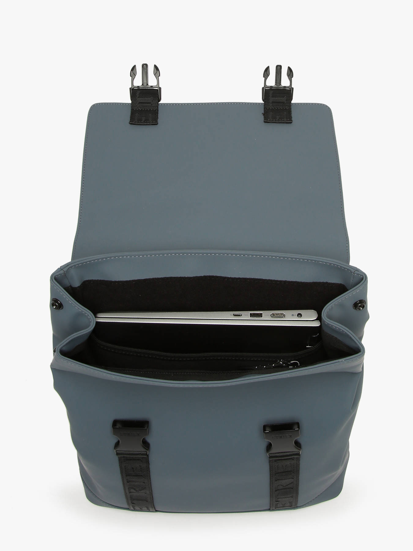This business backpack from the Impulsion line, made of waterproof polyurethane, combines elegance and functionality. It features an embossed tone-on-tone logo and engraved logo clasps. With a telescopic handle pass-through, a back pocket, a reinforced compartment for a 15"" laptop, and adjustable straps, it’s ideal for professionals. Inside, two simple pockets and a quick-access pocket provide practical storage.