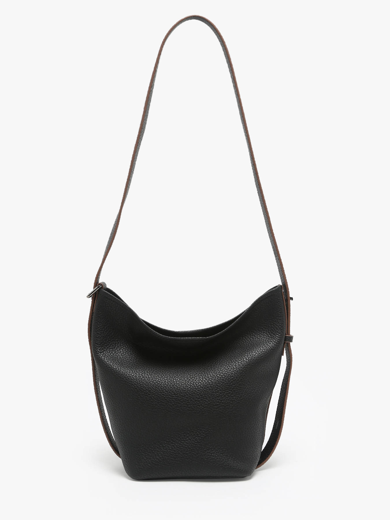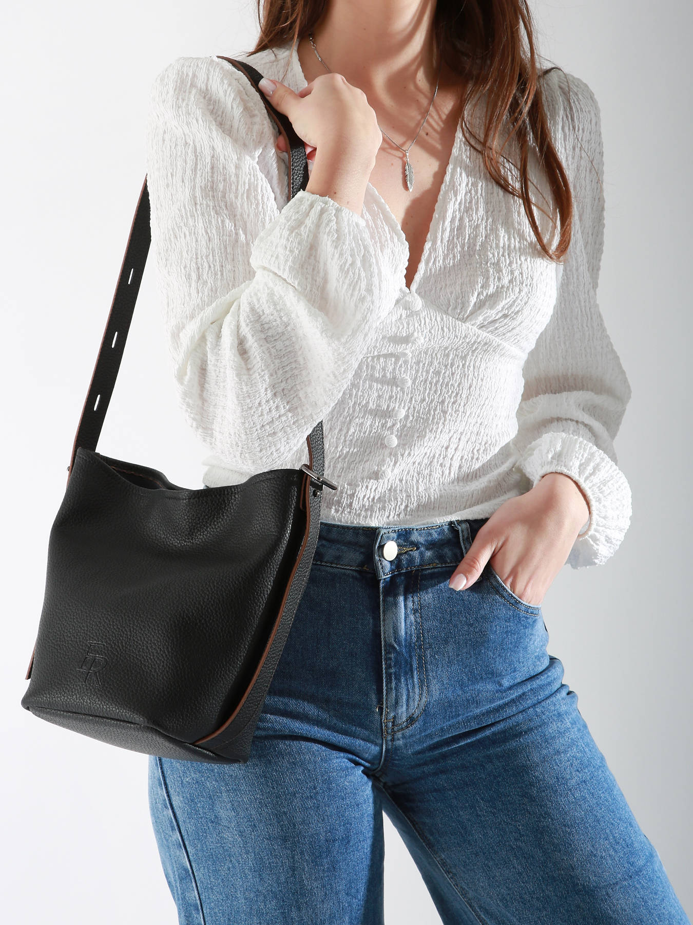 The S shoulder bag/backpack in the CAVALIER line by ETRIER is made from full-grain cowhide, combining quality and elegance. It stands out for its versatility thanks to its multiple carrying options. Worn as a classic shoulder bag, it can also be easily transformed into a backpack. Simply reposition the inner pouch, adjust the details and re-group the shoulder strap to adopt the backpack configuration. The bag features a modern logo with the ETRIER brand letters, embossed for a discreet, refined finish. Inside, a cotton pouch provides a practical space for organising your personal belongings. A versatile, elegant and functional model, ideal for a dynamic everyday life. This bag is also available in a larger size.