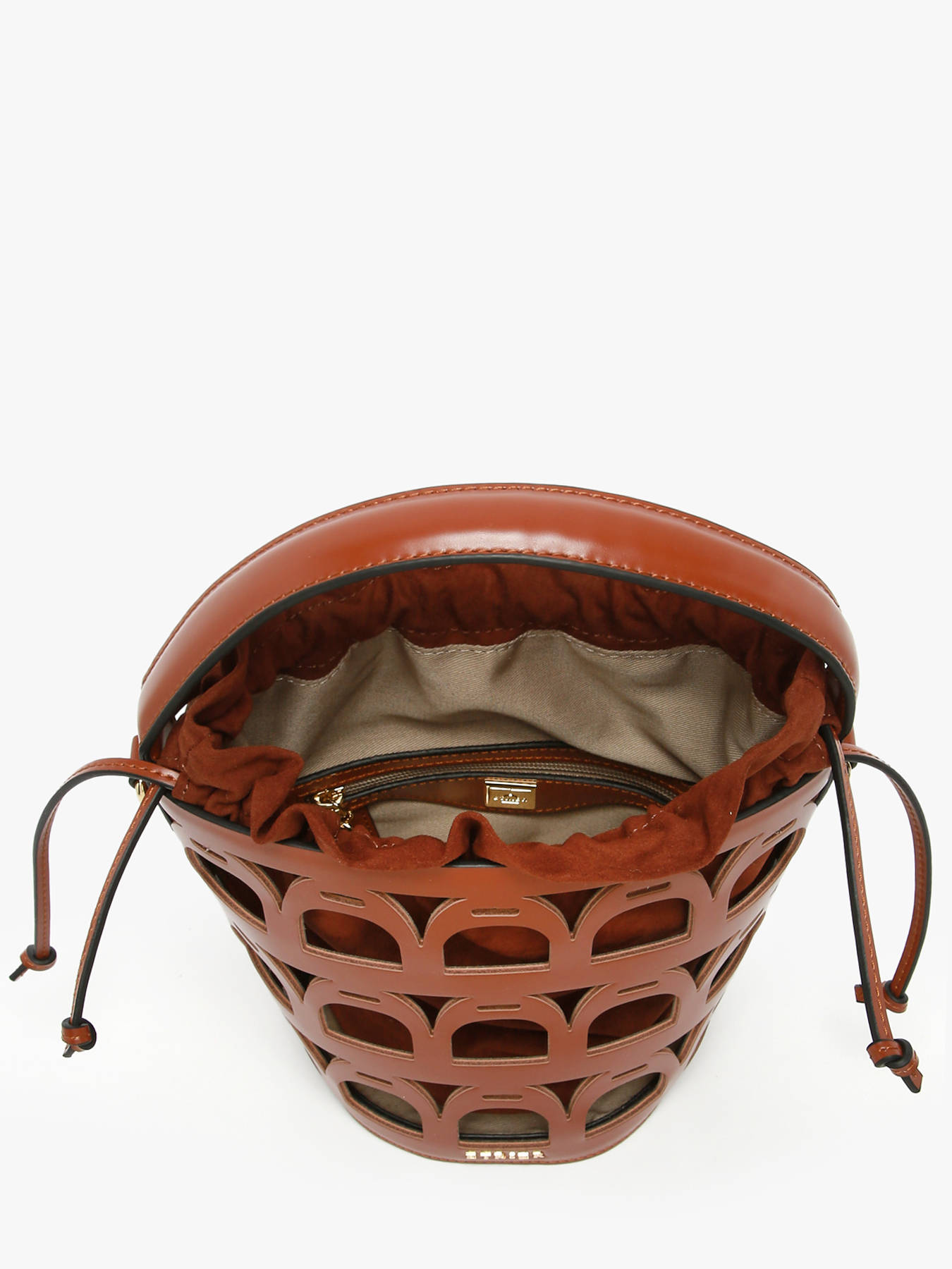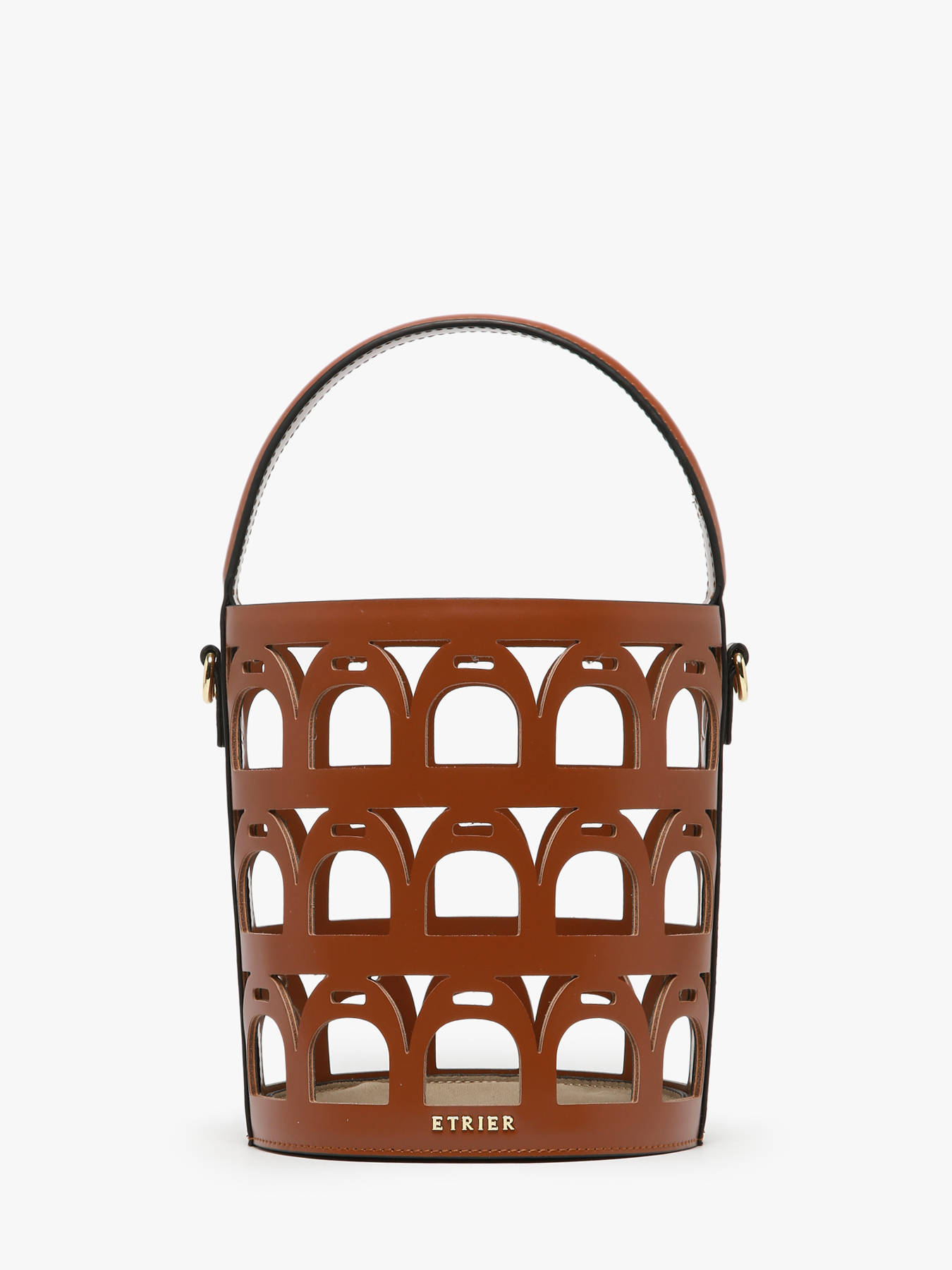 The EPONA crossbody bag by ETRIER stands out with its structured, contemporary design. Crafted from leather, this bucket-style model features a rigid geometric silhouette and subtly integrated stirrups—a discreet yet iconic signature of the brand. It opens with a fabric drawstring pouch, which is secured to the bottom of the bag with a snap button for added stability. Designed to suit every style preference, it can be carried by hand with its top handle or worn crossbody thanks to the adjustable and removable strap. A modern and refined piece, perfect for adding structure and character to any outfit.