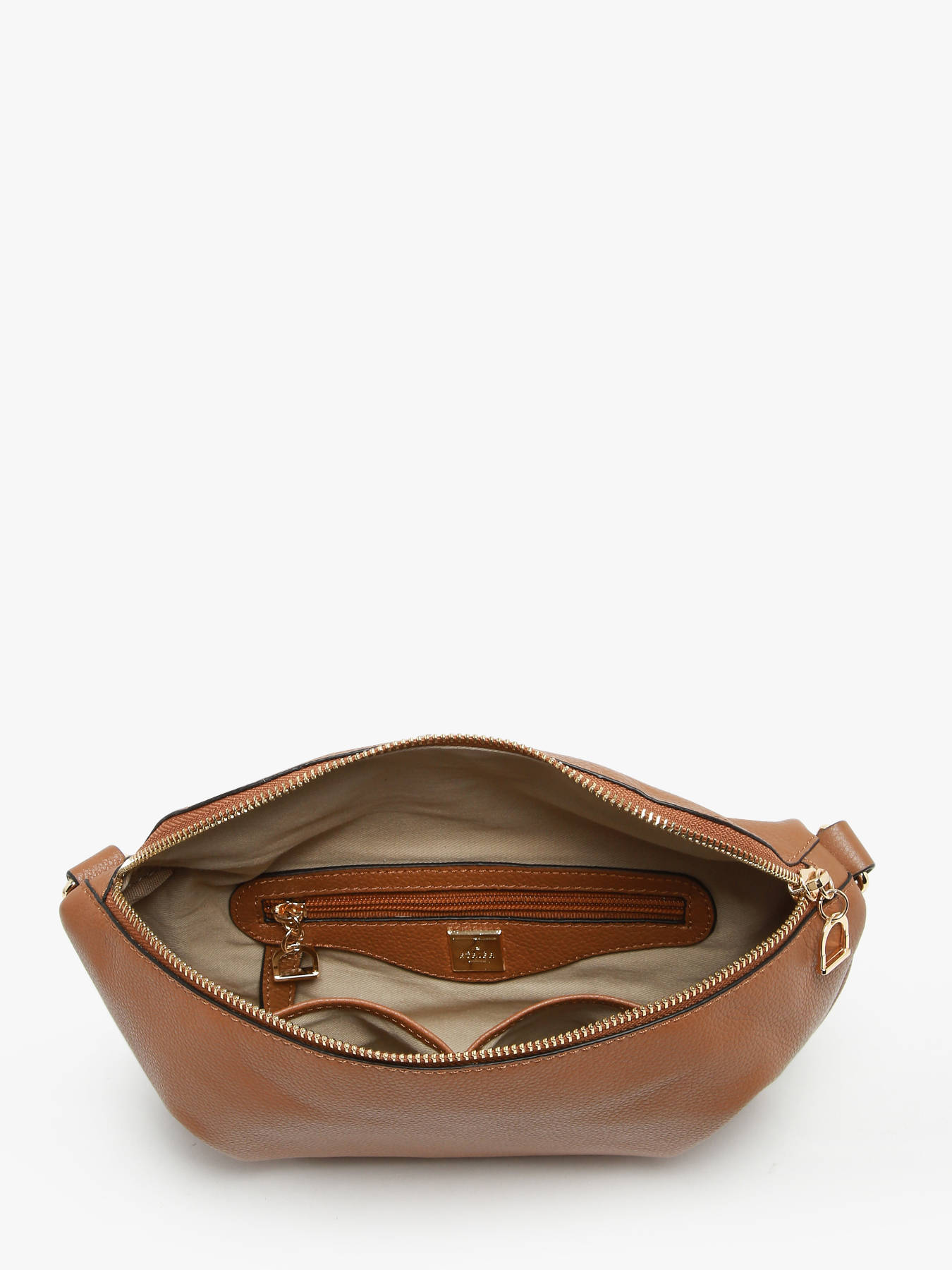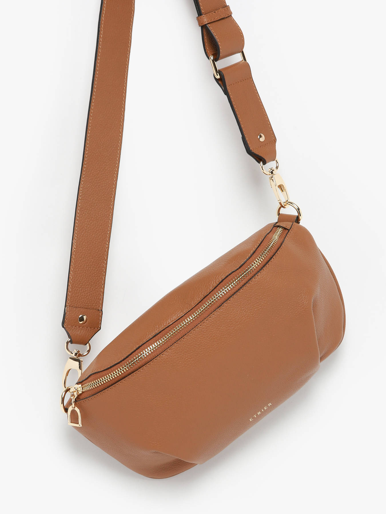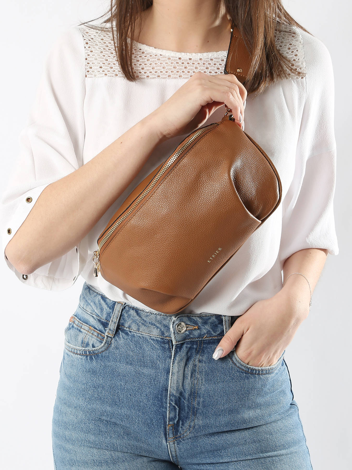 The maxi ETRIER belt bag from the TRADITION line is adorned with gold metal accessories and is available this season in trendy pastel colors. Made of cowhide leather, it features a back pocket and closes with a zipper. The wide removable and adjustable leather shoulder strap allows for wearing it crossbody. The spacious interior includes a compartment with a zip pocket and two patch pockets for optimal organization.