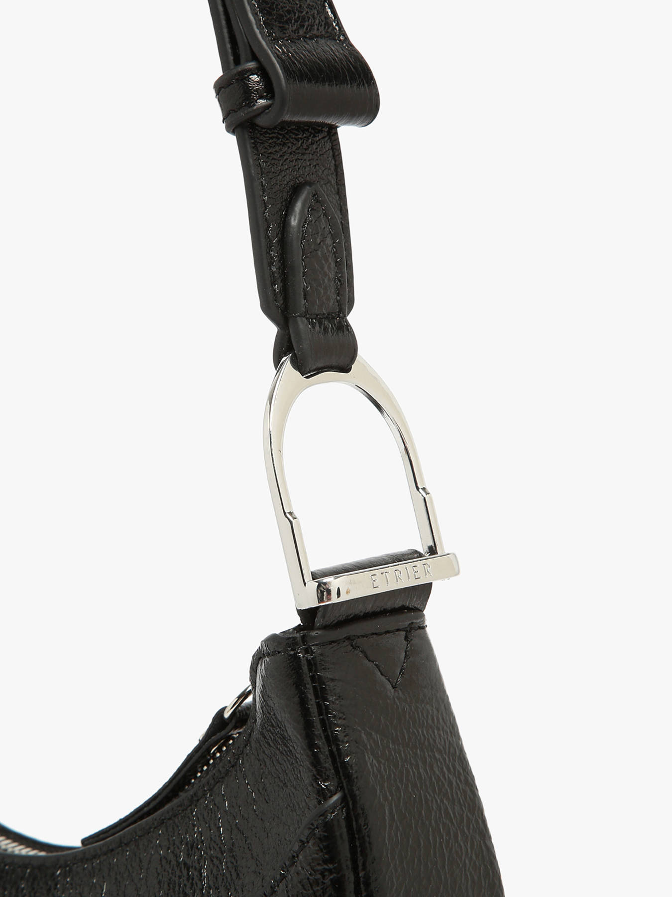 The ETRIER shoulder bag from the JOLLY line is crafted from iridescent cowhide leather, bringing a luminous elegance to this bold style. Its zipped closure ensures the security of your belongings, while the back exterior pocket offers quick and practical access to essentials. The adjustable strap provides comfortable shoulder wear, perfect for everyday use. Inside, the main compartment is complemented by a simple pocket and a zipped pocket, making organization easy. The Jolly line draws inspiration from the “Highlander Cowboy” spirit, blending wild allure with modern refinement. The Etrier logo detail on the strap adds a final elegant and distinctive touch to this bag, ideal for showcasing a unique style during winter.