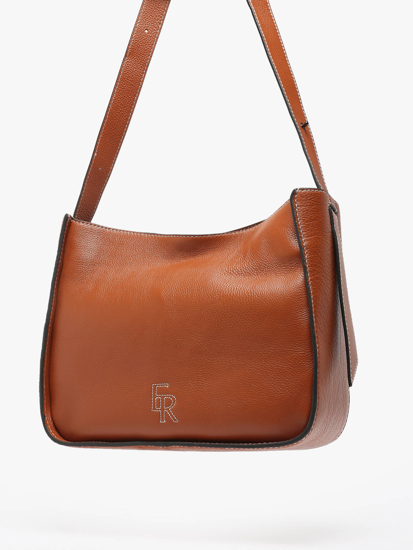 The ETRIER shoulder bag from the FOUDRE line showcases an urban yet sophisticated style. This model is highlighted by its contrasting stitching and new logo. Made from cowhide leather, it features an adjustable strap and a spacious compartment with a zippered pocket and two simple pockets. This is the largest size in its collection.
