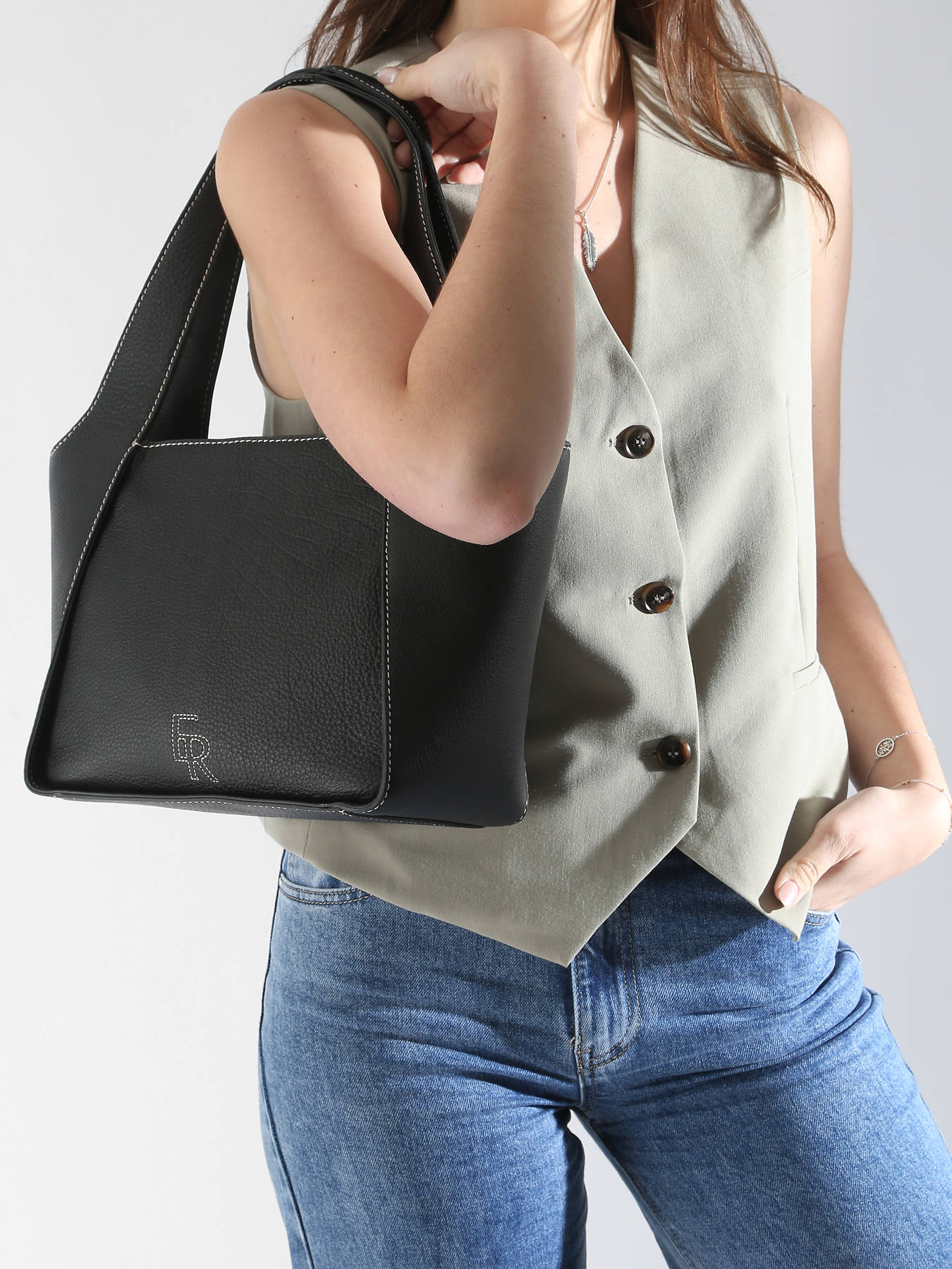 The ETRIER shoulder bag from the FOUDRE line is made of cowhide leather. It closes with a zipper. It features two slip pockets, one zippered pocket, and an interior compartment for practical organization. Its elegant and functional design makes it the perfect accessory for everyday shoulder wear.