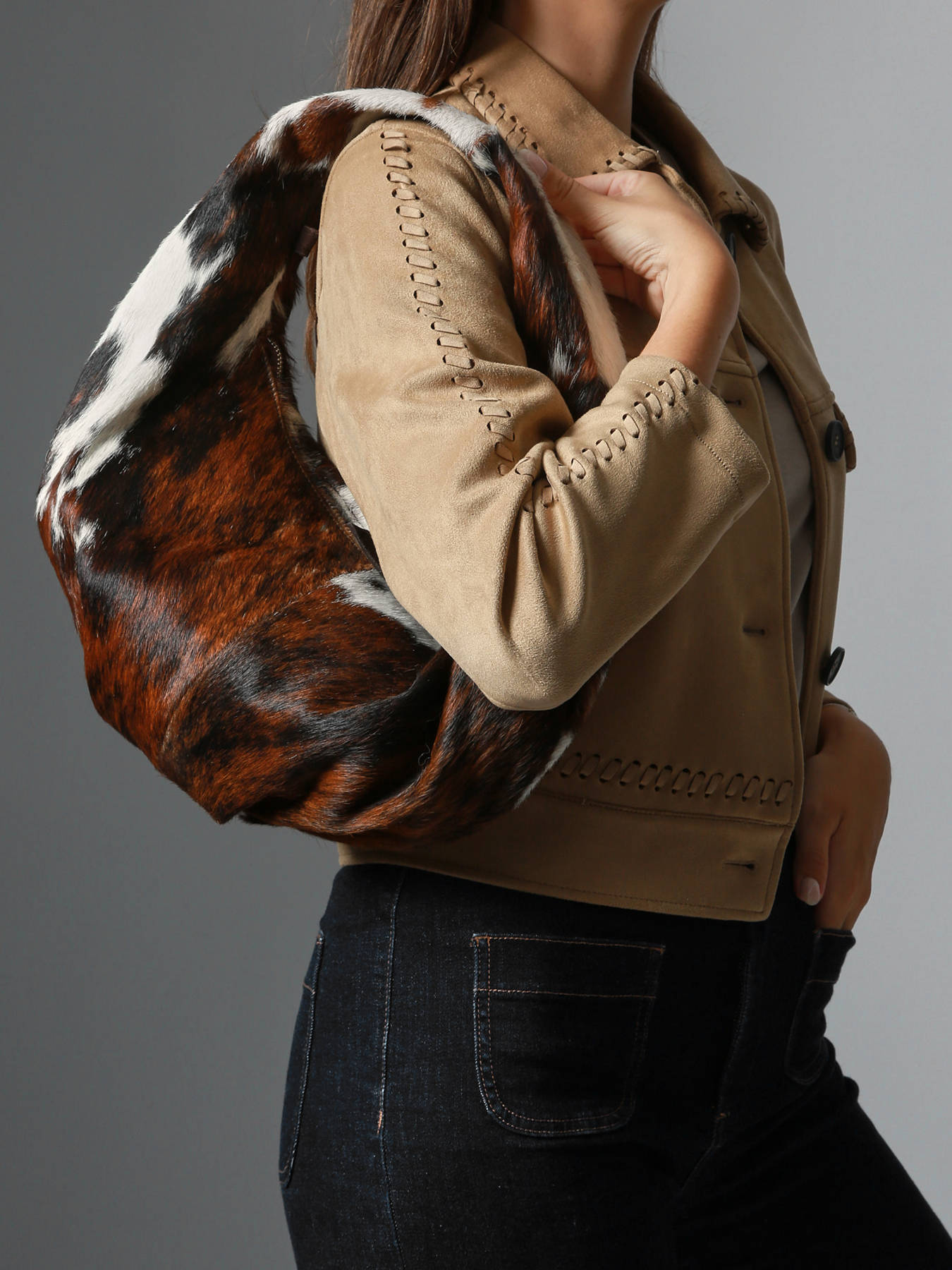 The REBOND shoulder bag by ETRIER, a true signature piece, stands out as a must-have this season. With its elegant hobo silhouette and soft suede leather, it perfectly embodies effortless chic. Light and practical, it easily holds your essentials and offers versatile carrying options: on the shoulder for a casual look or in hand for a more sophisticated touch. Its timeless design is enhanced by exceptional Italian craftsmanship. Designed to adapt to your style, it features interior attachments that allow you to add a strap of your choice for even more customization (strap not included). Pair it with our chain (reference: 709-EACC070L) for a trendy and refined effect. In terms of functionality, it has an interior zip pocket to keep your essentials secure and closes with a zipper for maximum practicality.