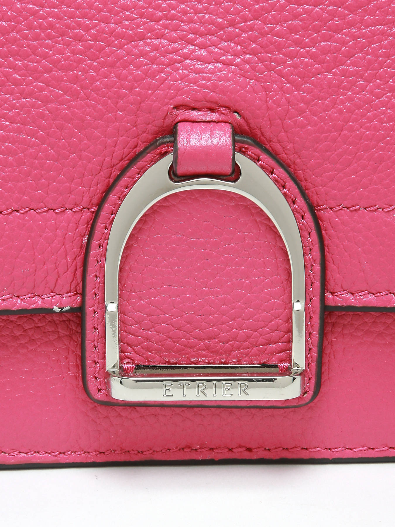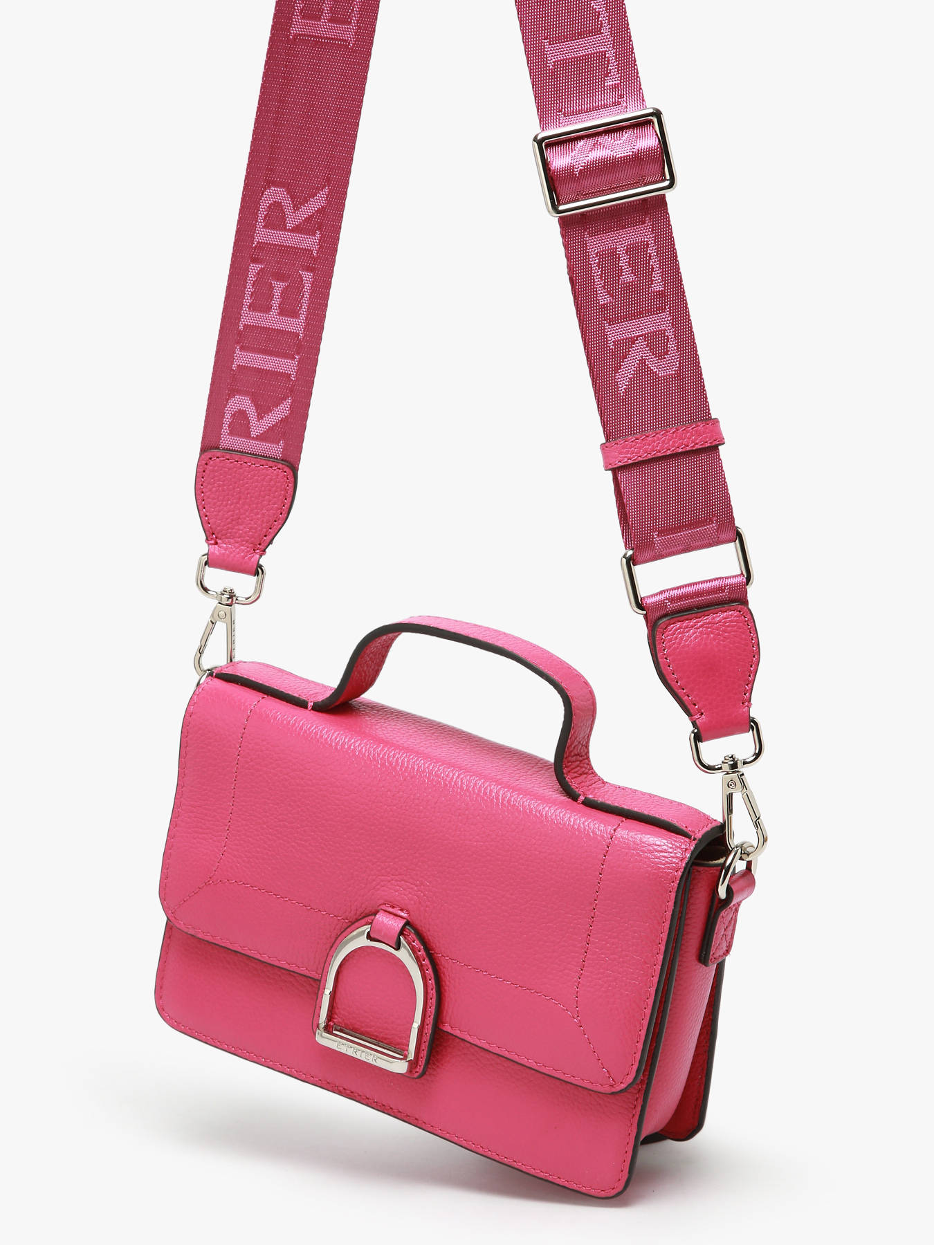 The ETRIER crossbody bag from the ALTESSE line, in a medium size, is crafted in cowhide leather. At the back, there is a flat pocket. It features a wide, removable canvas shoulder strap embroidered with the tonal ETRIER logo, as well as a leather handle. The flap closure, adorned with the iconic metal stirrup emblem of the house, secures with a press stud. Versatile, it can be worn over the shoulder or carried by hand. Inside, discover a leather key holder, a compartment with a flat pocket, and a zippered pocket for optimal organization. Available in various seasonal colors, as well as in larger and smaller sizes.
