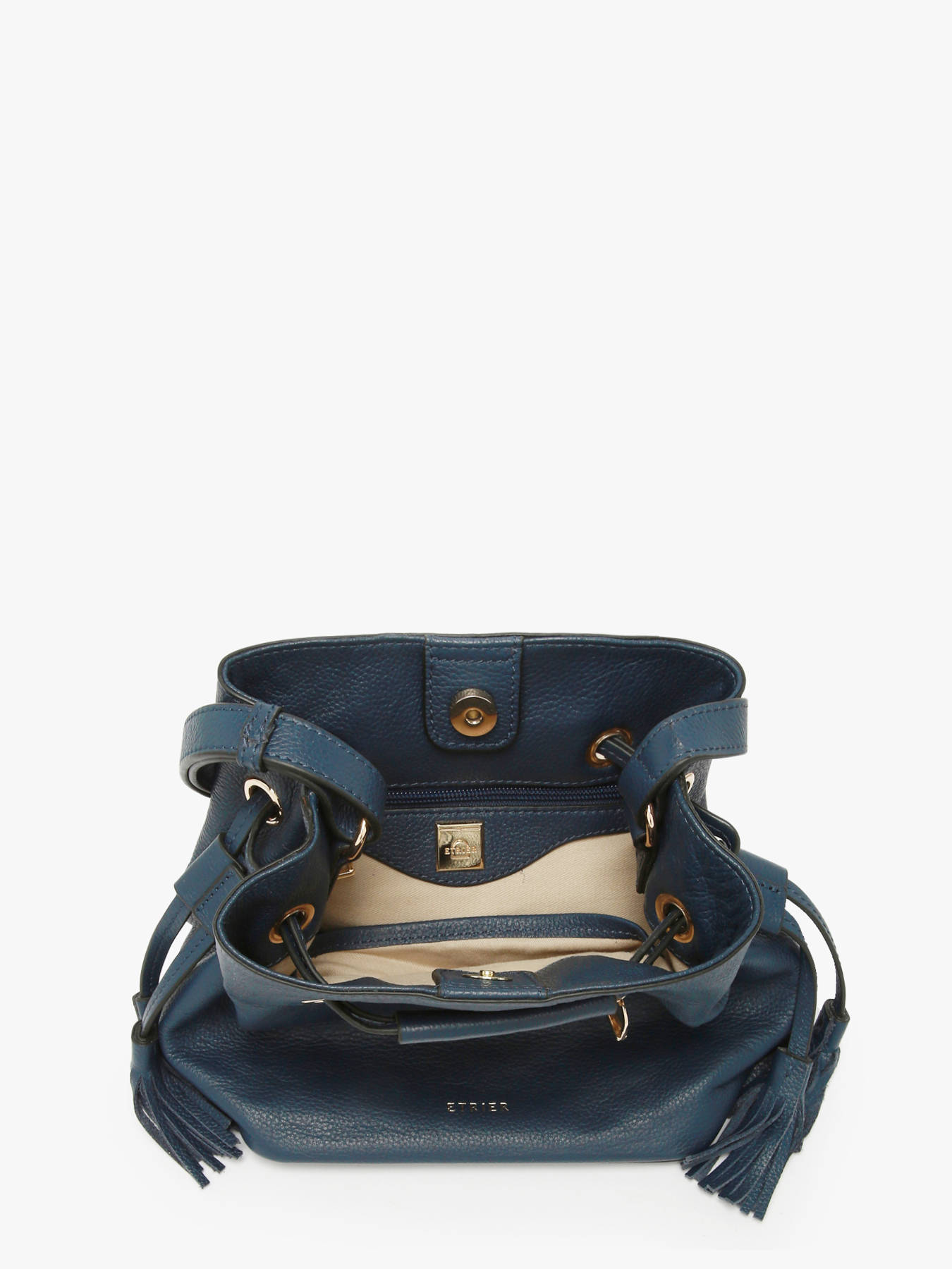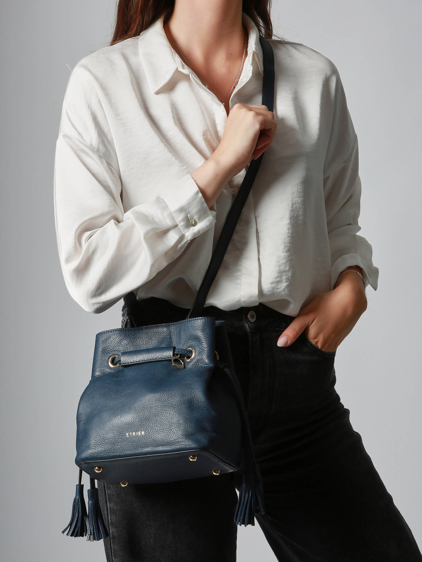 The current season sees the small ETRIER handbag from the TRADITION line undergoing a transformation with a new aesthetic. Adorned with golden accessories, this piece displays a more refined and feminine look. The closure, secured by a snap button and drawstring, offers appreciated versatility to this small bag. The adjustable leather shoulder strap allows for wearing it over the shoulder or across the body, providing trendy versatility for all occasions.